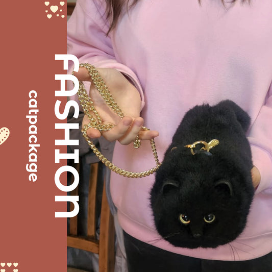Plush Black Luxury Cat-Themed Tote & Crossbody Bag – High-Quality Women's Handbag