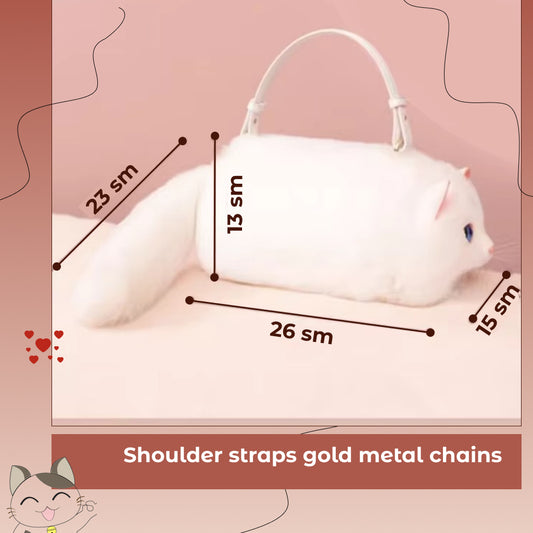 Plush White Cat Shoulder Bag – Cute Fur Crossbody Phone Purse with Chain