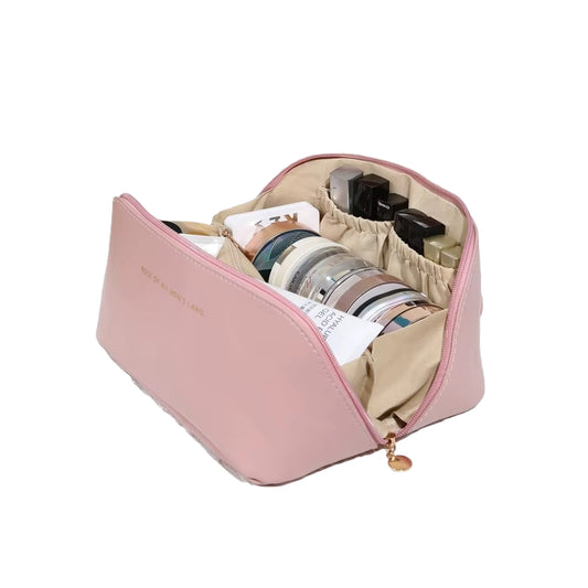 Large Capacity PU Leather Cosmetic Bag – Travel Toiletry Organizer for Women, Portable Makeup Storage Case